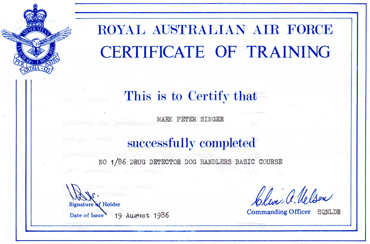 During his time in the RAAF, Mark became a narcotics detection dog trainer, playing a key role in the fight against illegal drug use within the military. His expertise was recognized and used extensively by Australian Customs, the Australian Federal Police, and various state police forces, making him a go-to trainer in high-stakes operations.