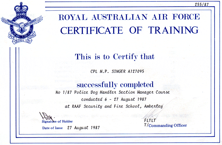 - 12 years in the Royal Australian Air Force as a specialist dog trainer